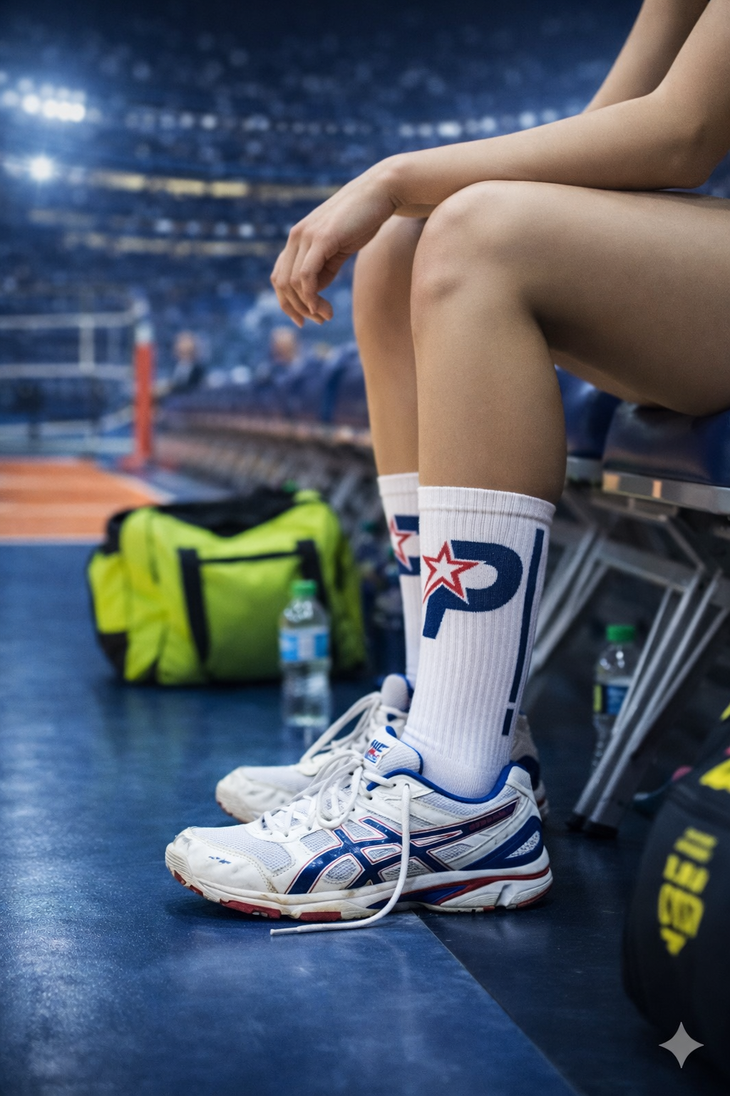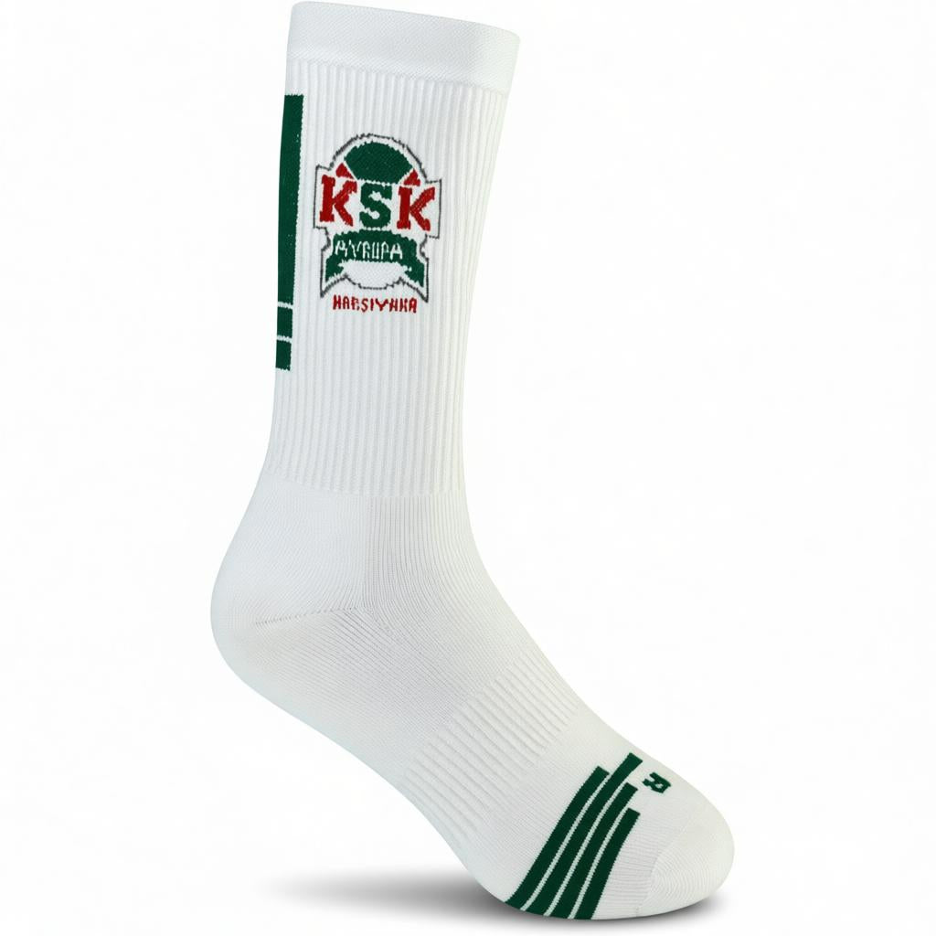 Kulüp logosu, renkleri ve kimliğine uygun tamamen özel üretim voleybol çorapları.